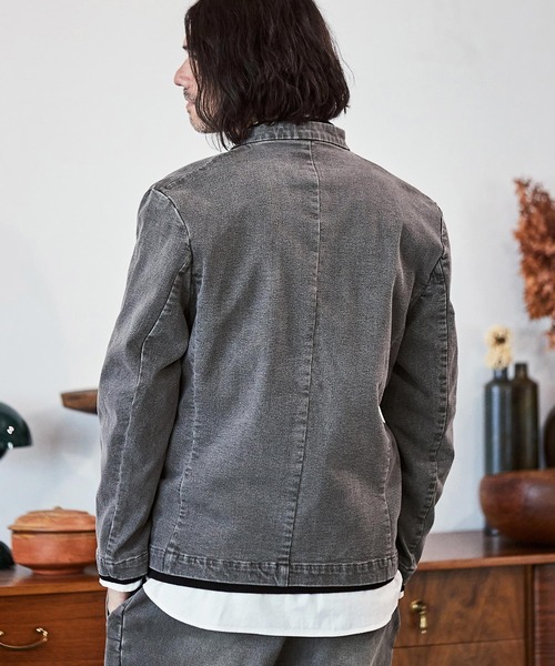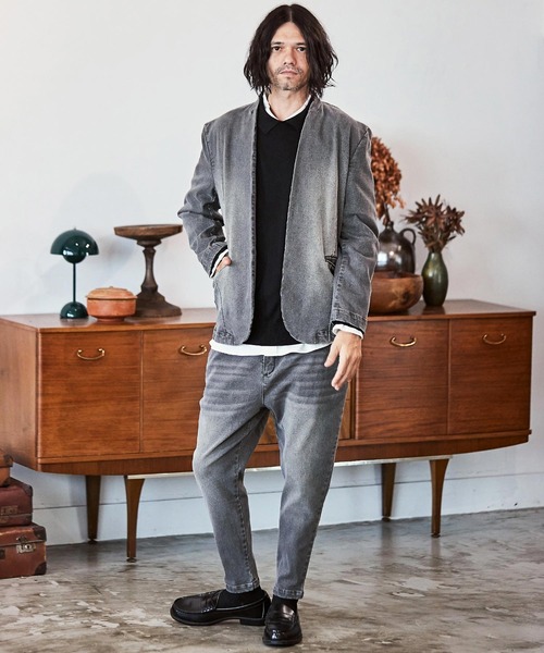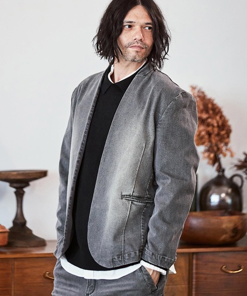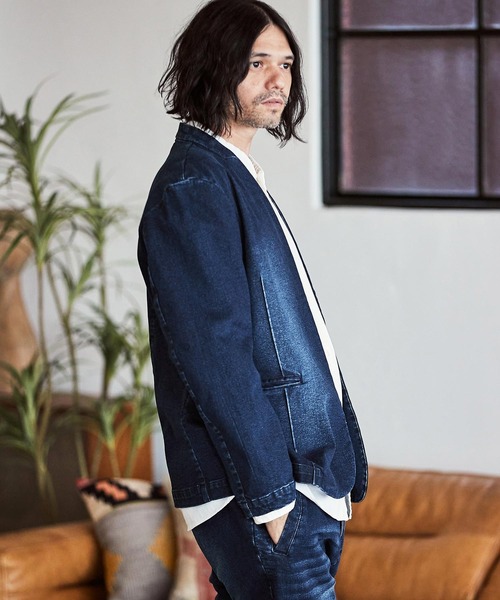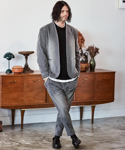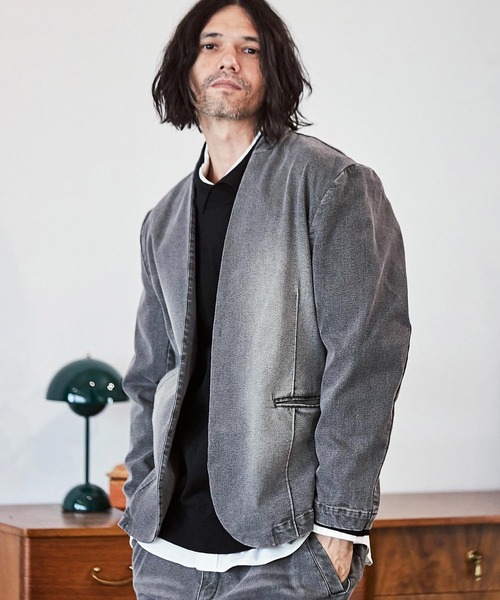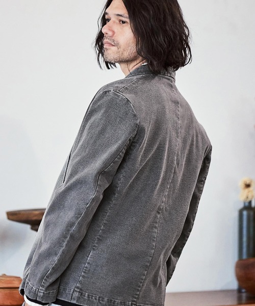 CAMBIO ジャケット ノーカラージャケット mj9454- デニム加工ノーカラージャケット メンズ