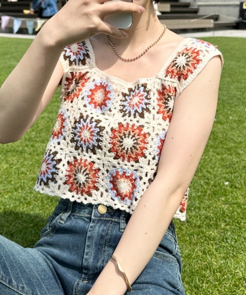 CLEA ベスト ジレ フラワークロシェ編みビスチェトップス レディース