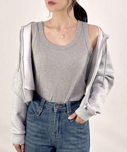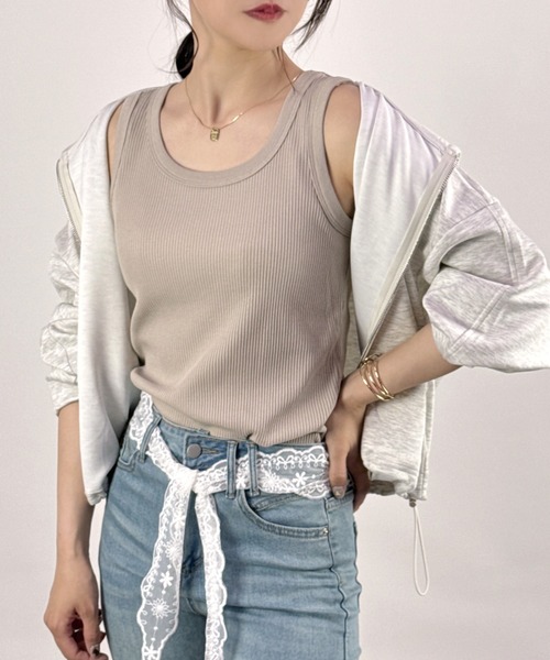 商品名:【どんなコーデにも合う定番アイテム♪】テレコアメスリタンクトップ