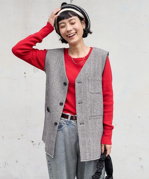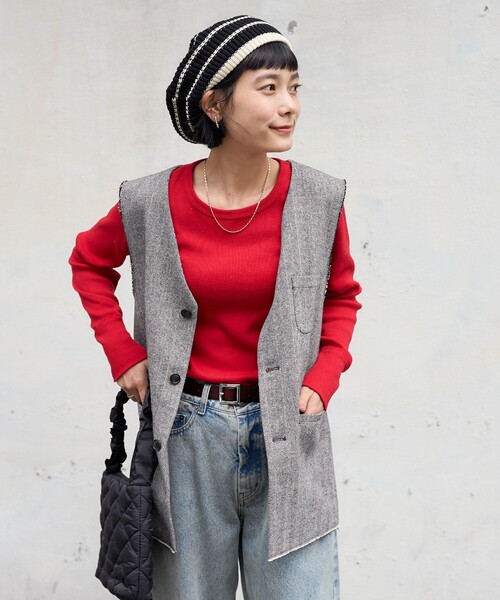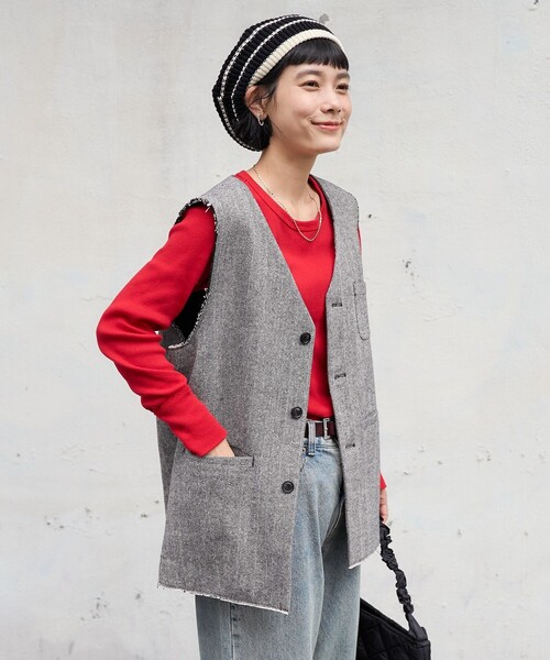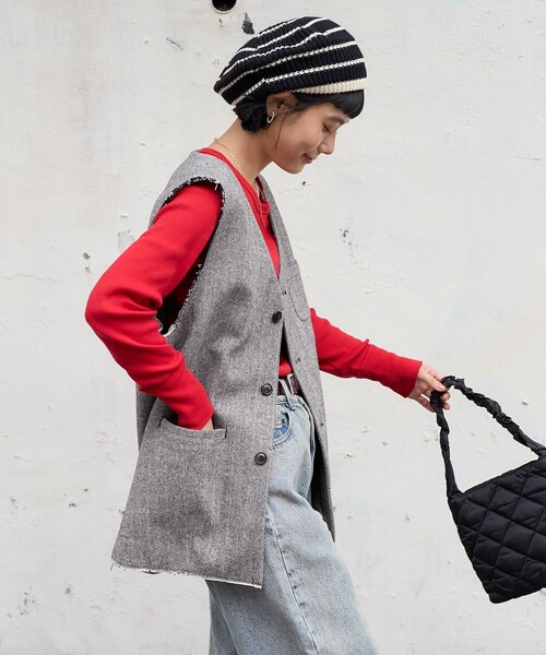 キーワード:ベスト ジレ レディース ノースリーブ 無地 秋 冬