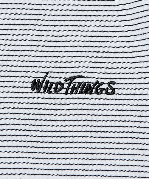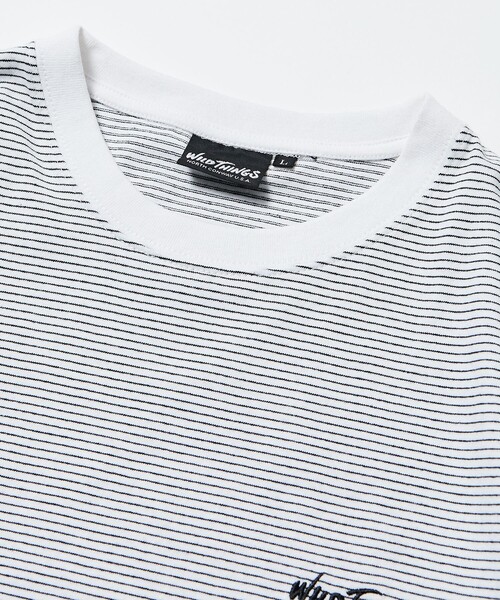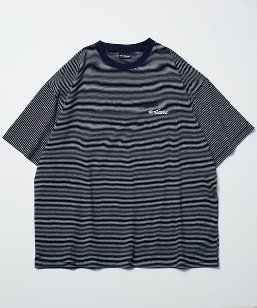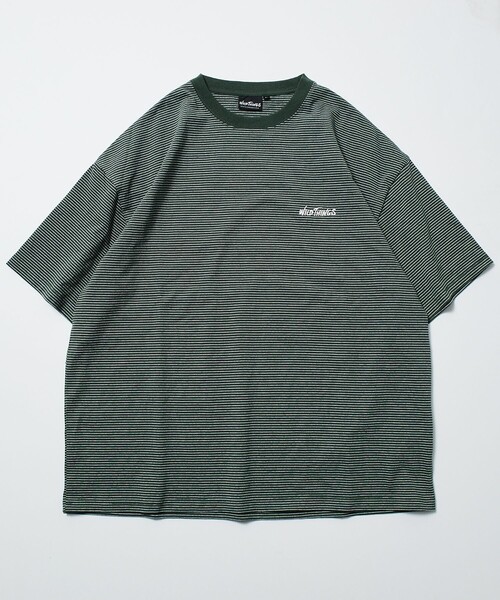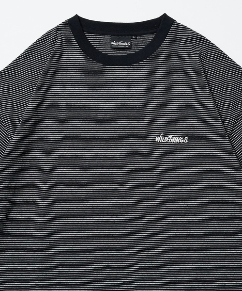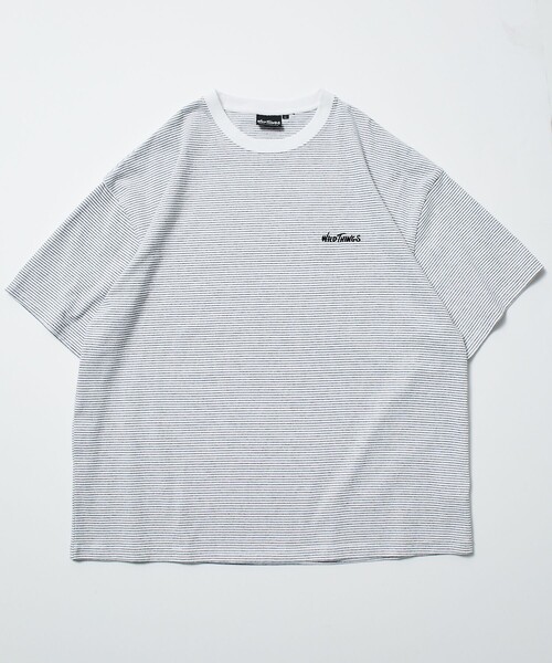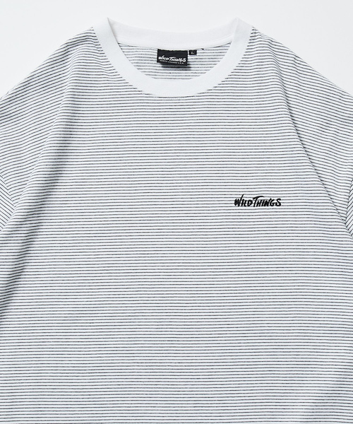 参考商品名:【限定展開】WILD THINGS×FREAK’S STORE/ワイルドシングス 別注 ビッグシルエット ワンポイントロゴ刺繍 ピンボーダーTシャツ