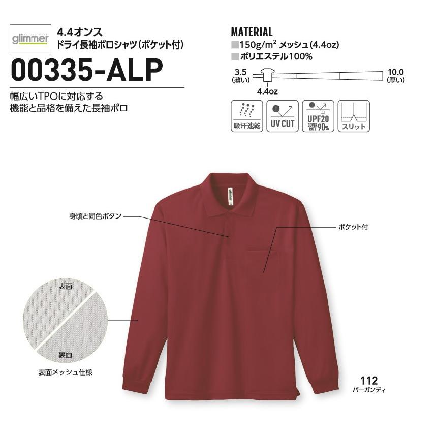 glimmer ポロシャツ メンズ 無地 グリマー 4.4オンス ドライ 長袖 ポケット付き スポーツ ゴルフ ビズポロ ユニフォーム 00335-ALP 通販A15