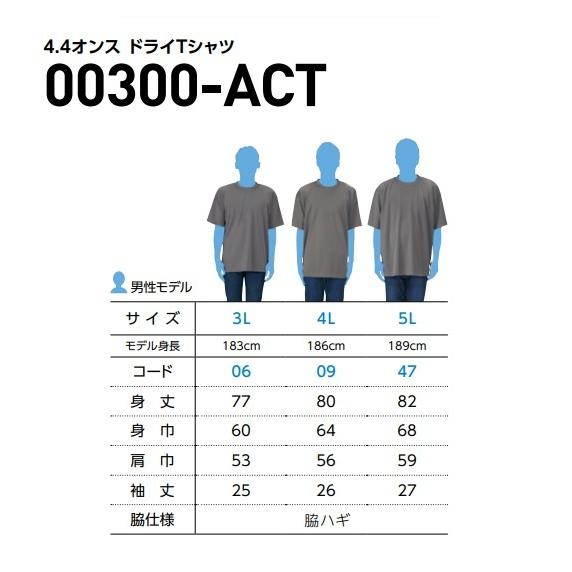 glimmer Tシャツ メンズ ドライ 300-ACT 大きなサイズ BIG 3L 4L 5L  吸汗速乾 UV対策 glimmer 丸首
