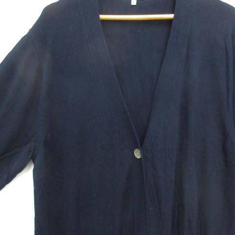グローバルワーク GLOBAL WORK ニットカーディガン 薄手 ロング丈 無地 サイドスリット L 紺 ネイビー /FF14 レディース