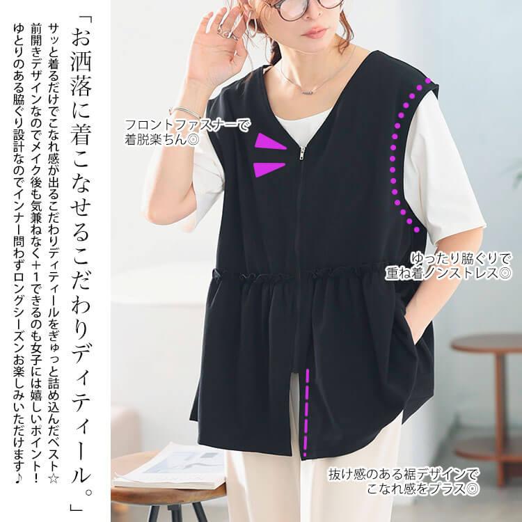 【商品名】 大きいサイズ レディース フリルペプラムZIPベスト