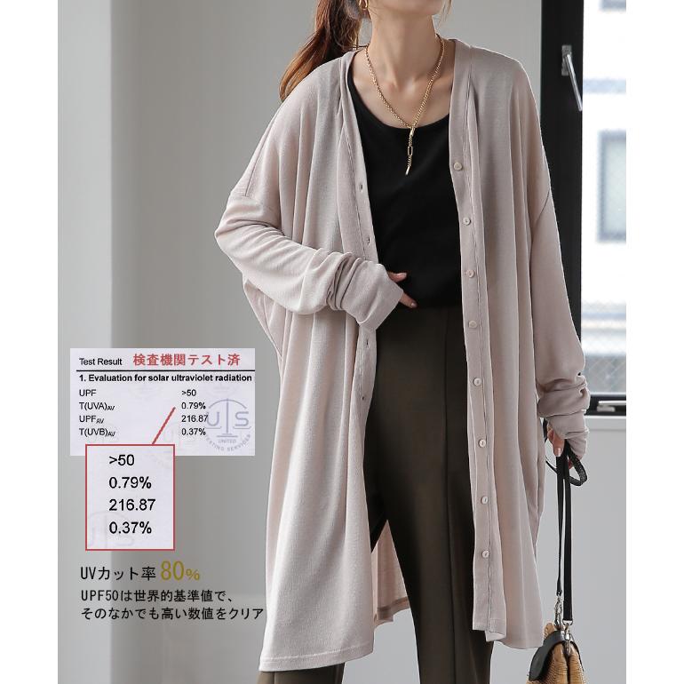 HUG.U カーディガン レディース ひんやり UVカット 紫外線対策 ロングカーディガン 長袖 指穴 薄手 シアー サマーニット 羽織 夏