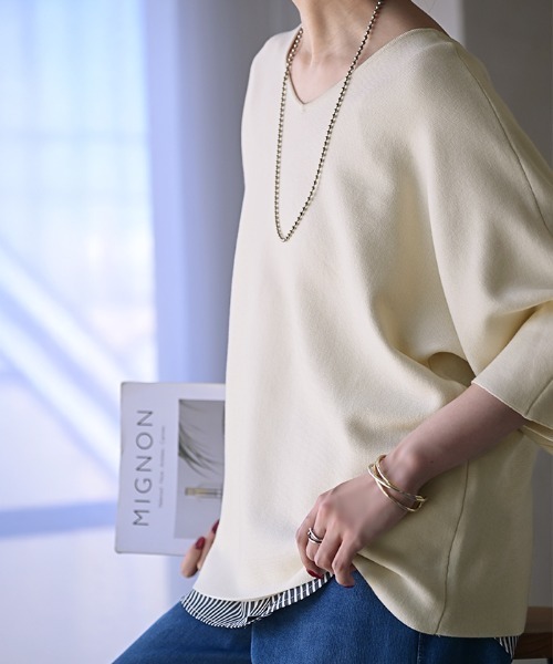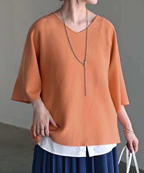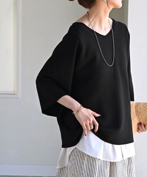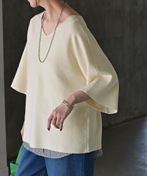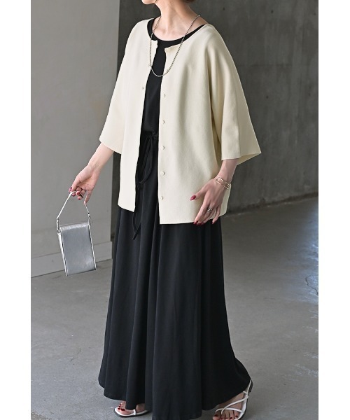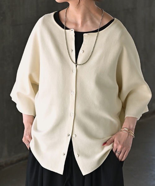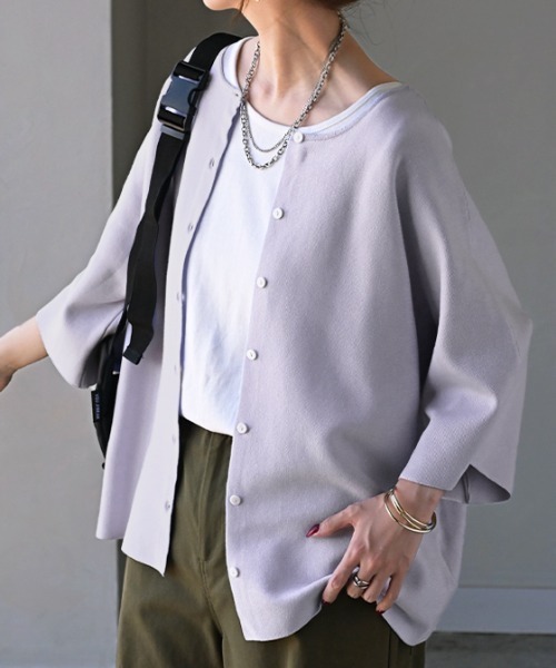 HUG.U カーディガン 前後2way 七分袖ニットカーディガン レディース