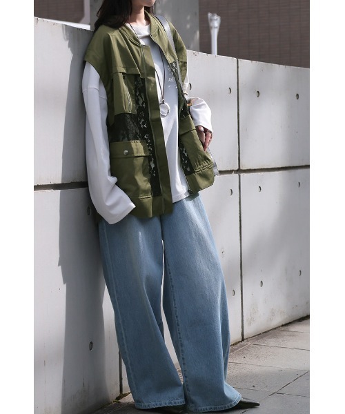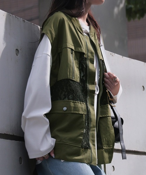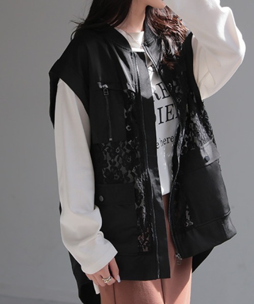 キーワード:ベスト ジレ レディース ノースリーブ レース 無地