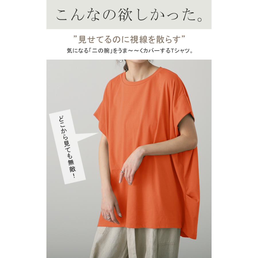 HUG.U Tシャツ レディース 二の腕カバー カットソー 半袖 トップス Uネック Vネック 無地 体型カバー