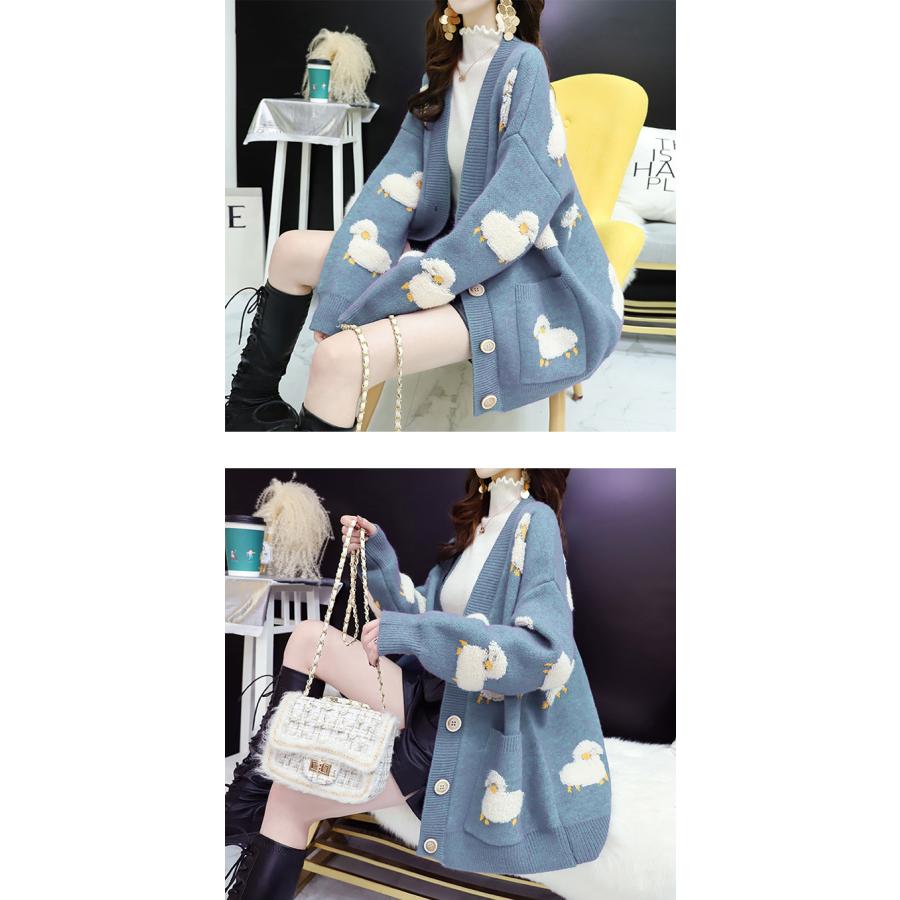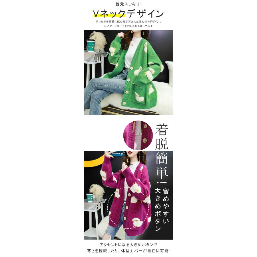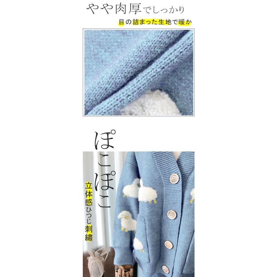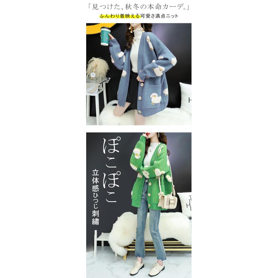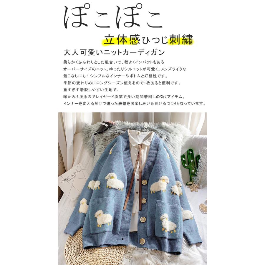 KAREI ニットカーディガン ぽこぽこ 立体感ひつじ刺〓 動物柄 羽織 前開き ロング オーバーサイズ 長袖 ボリューム袖 コート ニット