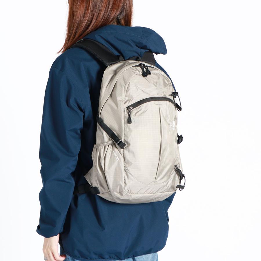 シンプルで日常使いしやすい、容量18Lのバックパック。本体は、ポールキャリアやチェストストラップ、通気性の高い背面設計など多様な機能性が搭載されています。通勤・通学からデイハイクまで、幅広いシーンに活躍するアイテムに仕上がっています。