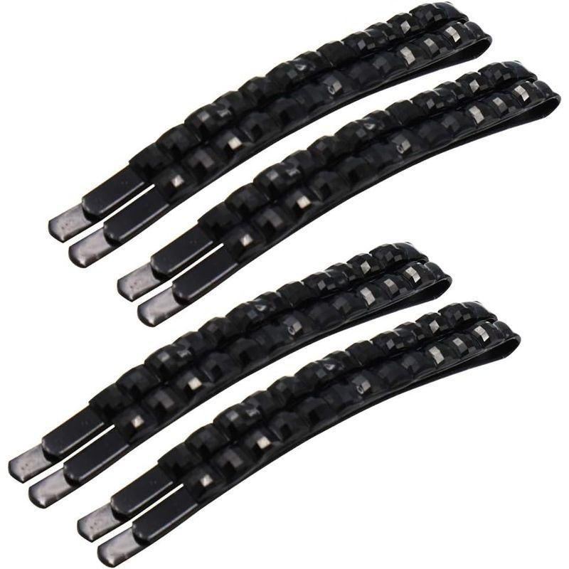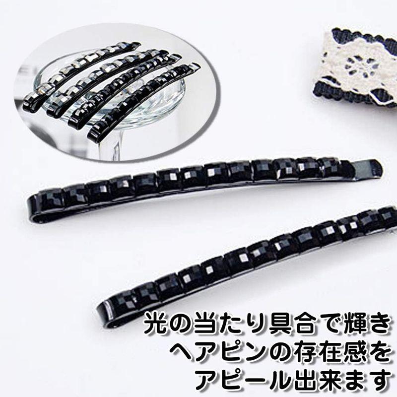 Kyoto_Inside シンプル ラインストーン ヘアピン 大人可愛い 髪飾り 髪留め まとめ髪 アップヘアー (ブラック、8本)