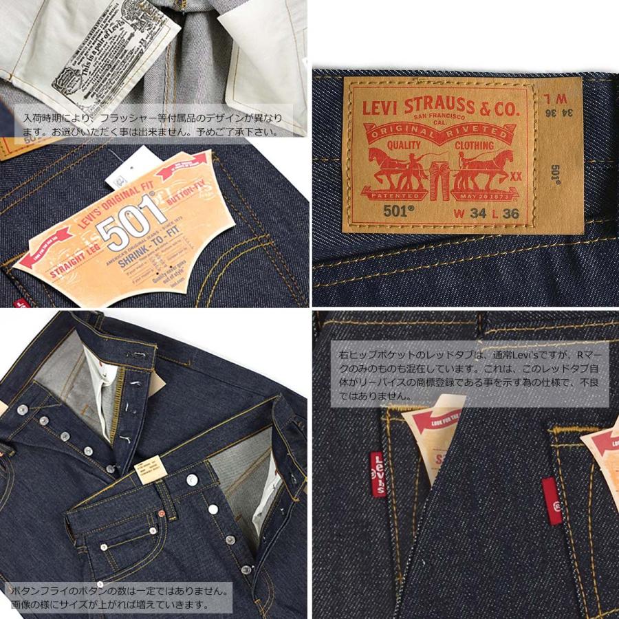 銅リベット、レッドタブ、アーキュエットステッチ、5ポケット、ボタンフライ・・・。この世に存在する全てのジーンズの原点がこのリーバイス501。説明不要の超定番アイテムです。弊社が扱うのはリーバイ・ストラウス社のUSAライン。ジャパンラインとは違い、レングスが選べるので、最も美しいシルエットで履くことができます。 このオリジナルは「シュリンク・トゥ・フィット」という、洗って縮めて体にフィットさせる未洗いの生デニム。まさに育て上げるような感覚。501といえばオリジナル!という根強いファンも少なくありません。