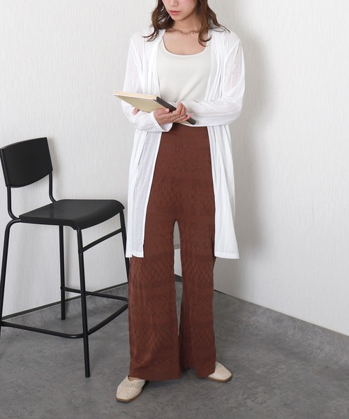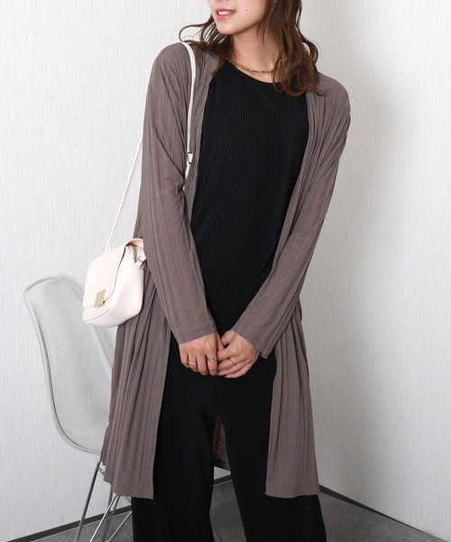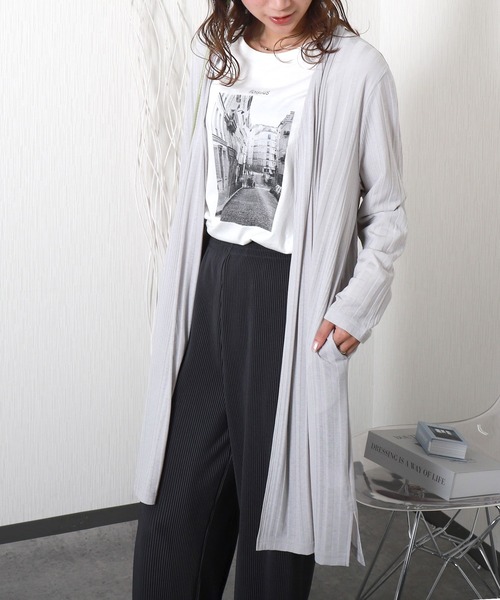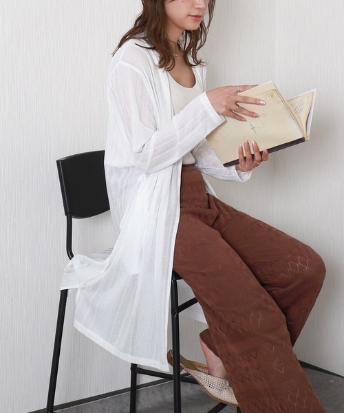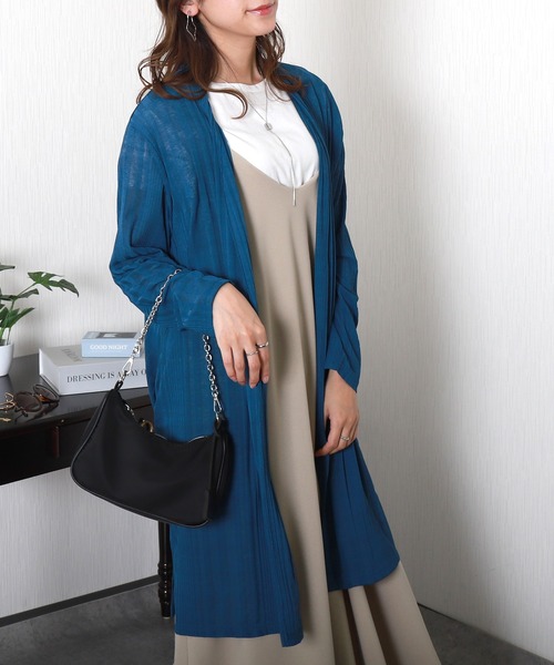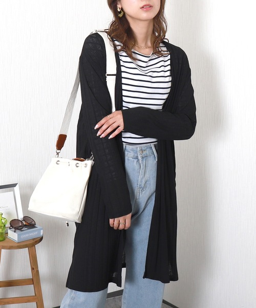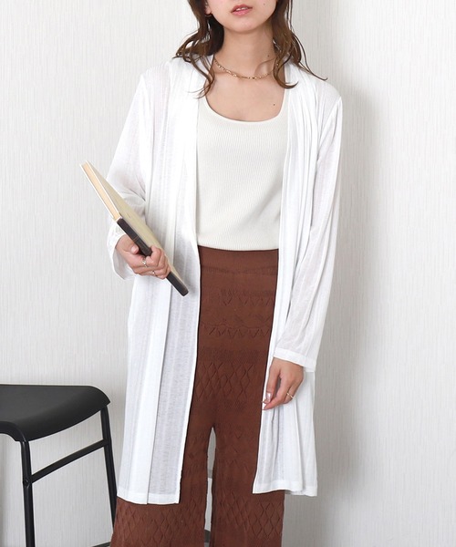 キーワード:カーディガン レディース uvカット ストライプ ノースリーブ ロング丈 速乾 無地 ナチュラル フェミニン 春 大人カジュアル