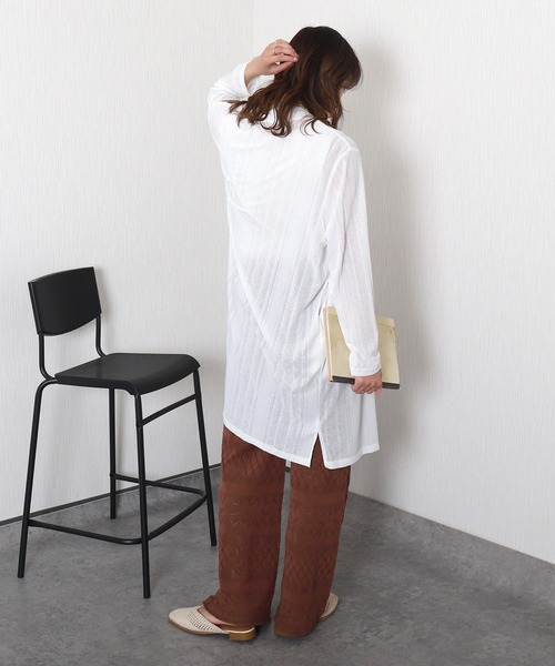 libelle more カーディガン 「吸水速乾・UVカット」梨地ランダムストライプテレコロングトッパー レディース