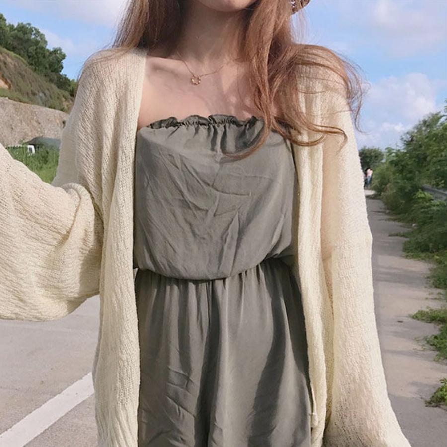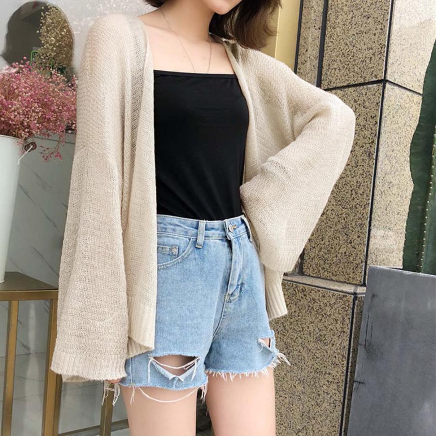 トッパーカーデ レディース きれいめ ボリューム袖 ふんわり ゆったり ショート サマーニット 韓国ファッション