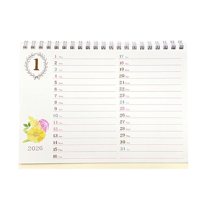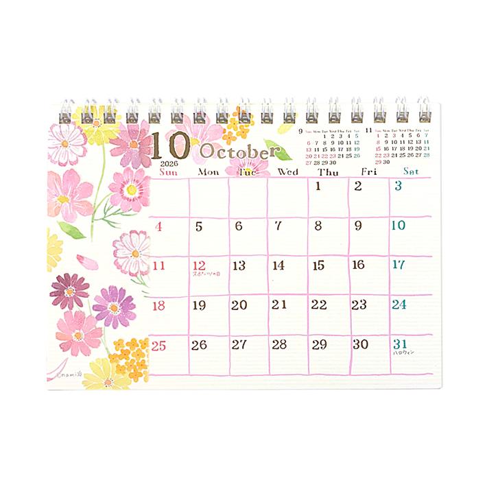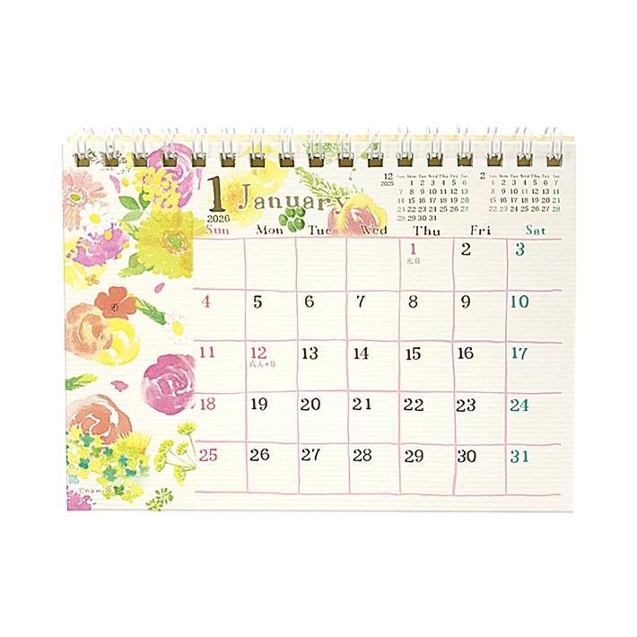 2026年卓上カレンダー 2026カレンダー 令和8年度 クローズピン なみなみ ナミナミ 花