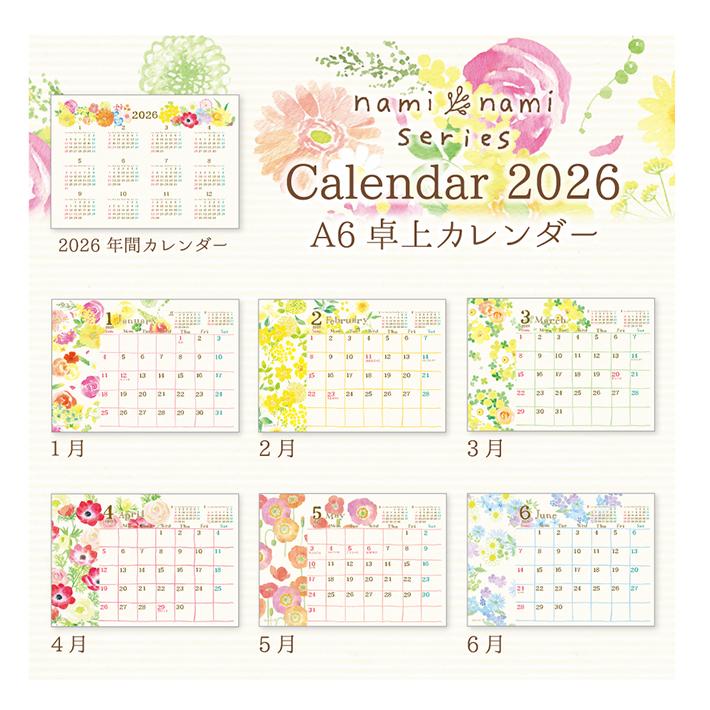 naminami 2026年 卓上カレンダー A6 CL-95685 [M便 1/2]
