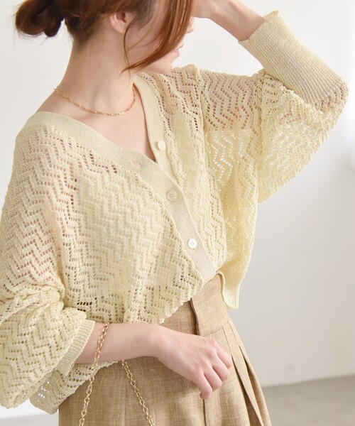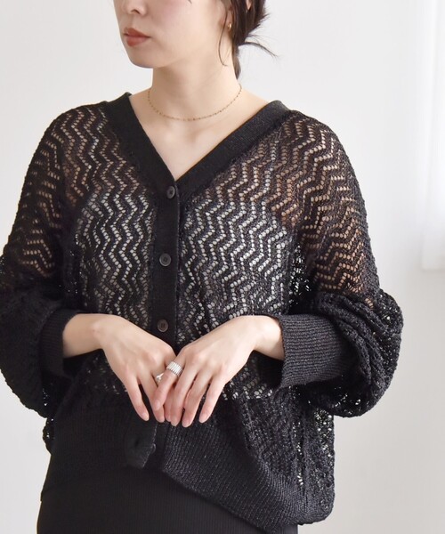 商品名:quaranciel:〈手洗い可能〉バルキーレース ドルマン スリーブ カーディガン