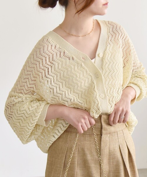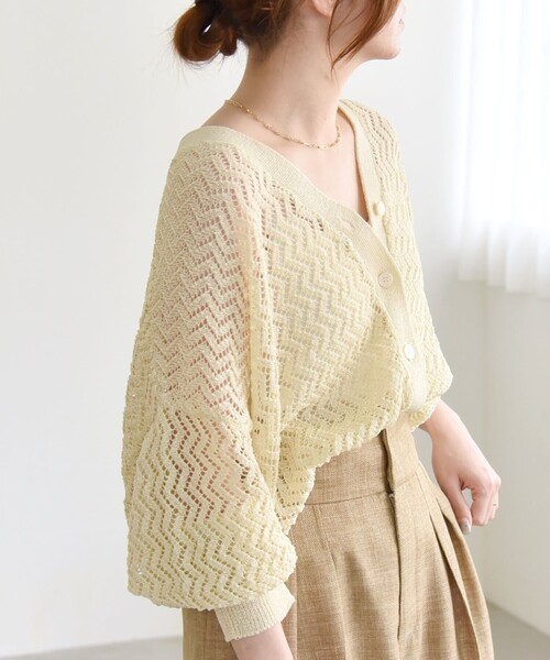 quaranciel カーディガン quaranciel:「手洗い可能」バルキーレース ドルマン スリーブ レディース