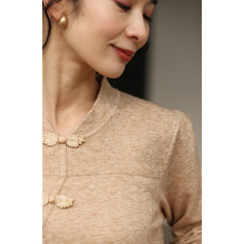 w60311ps 新作 新着 再入荷 CAWAII FRENCHPAVE フレンチパヴェ エレガント ベーシック カジュアル 可愛い かわいい カワイイ おしゃれ オシャレ お洒落 個性 個性的 定番 ベーシック 大人かわいい 大人可愛い 上品 女性らしい デザイン スタンダード ナチュラル きれいめ キレイめ シンプル フェミニン レディース レディースファッション 大人 ママ ミセス 30代 40代 50代 60代 シノワズリへの入り口 チャイナボタンニットトップス ニットソー ベージュ 長袖 長そで ロング袖 S M 小さめ 小さめサイズ小さい 小さいサイズ 低身長 痩せ ほっそり 小柄 細身 春 秋 冬 秋服 秋物 冬服 冬物 伸びる 伸縮性 ワンカラー ワントーン 日常着 普段着 日常使い