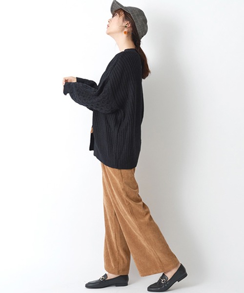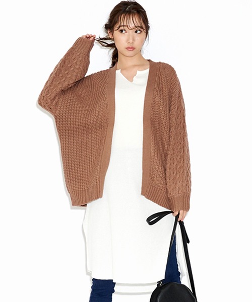 商品名:袖アラン柄ざっくりビッグシルエットケーブルカーディガン