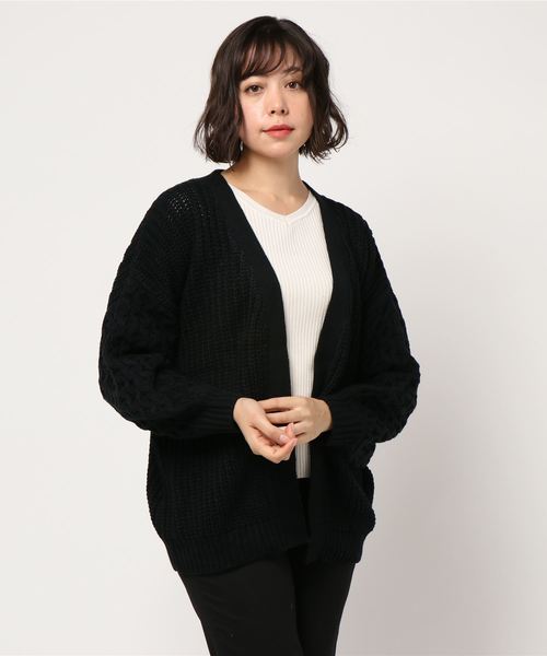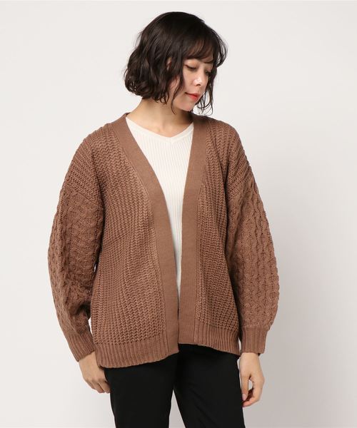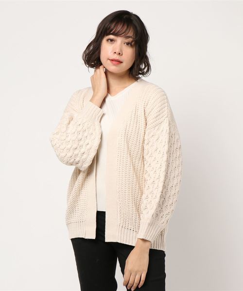 STYLEBLOCK カーディガン 袖アラン柄ざっくりビッグシルエットケーブルカーディガン レディース