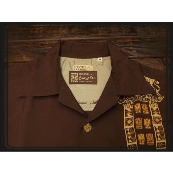 夏にかかわる曲を数多く手掛ける彼のデザインした作品は、シンプルながらパンチがきいたもので、アロハシャツの枠を超えた横山剣氏の美学がこのハワイアンシャツに表れている。ちょっぴりレーシーさを感じさせる前身頃は、東洋随一のカーマニアならではのセンスが引き立ち、いくつかの中から厳選されたトレードマークとTIKIが相性良くデザインされている。そして背中には、彼のキャッチフレーズ”Sorega Doshita”がチェーン刺繍にて語られている。