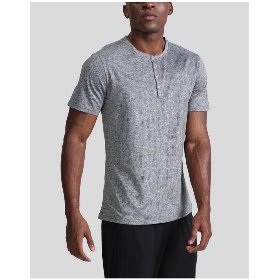 tシャツ 吸汗速乾 フィットネス トレーニングウェア スポーツ トップス ヘンリーネック 半袖 メッシュ メンズ