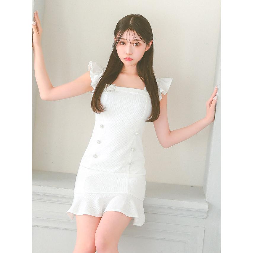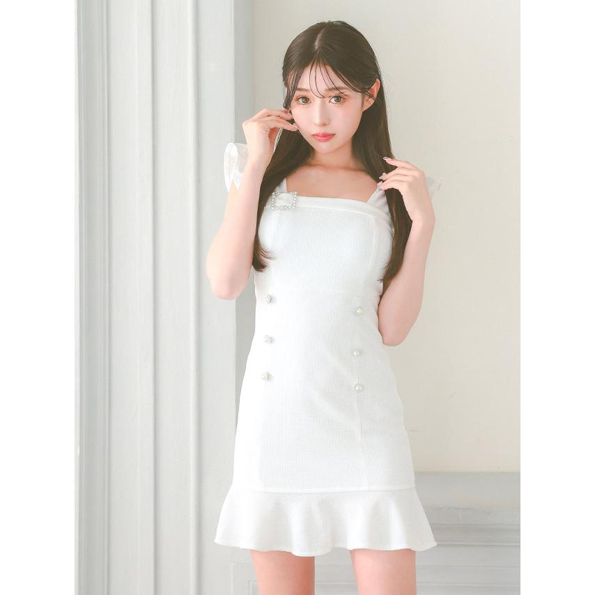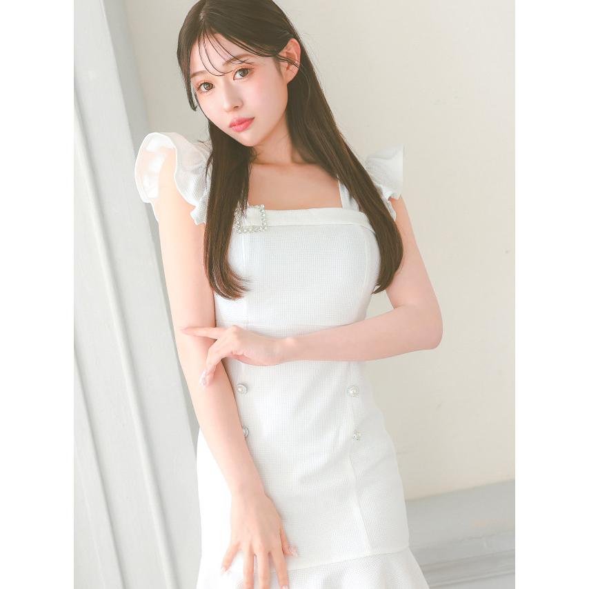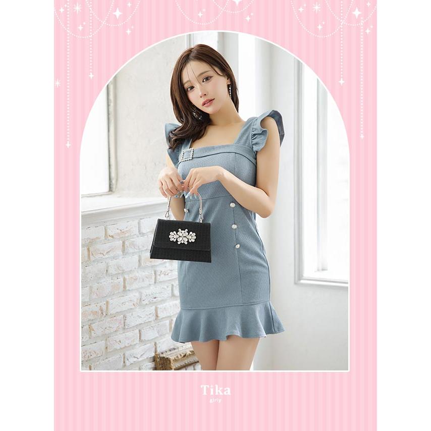 Tika キャバ ドレス ドット シアー ショルダー リボン キャミソール バストジップ フレア ミニドレス